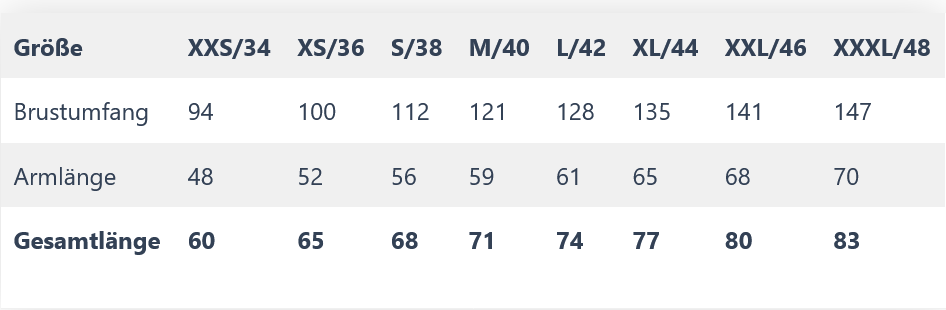 Größentabelle Juja